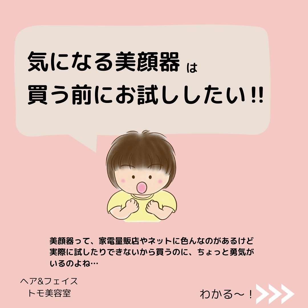 家電量販店やネットで見る美顔器 気になっても自分のお肌で お試しできませんよね?😅 そんな気になる美顔器 トモ美容室では、実際に お試しできますよ! #家庭用美顔器 #美顔器お試し #おウチdeエステ #丸亀市美容室